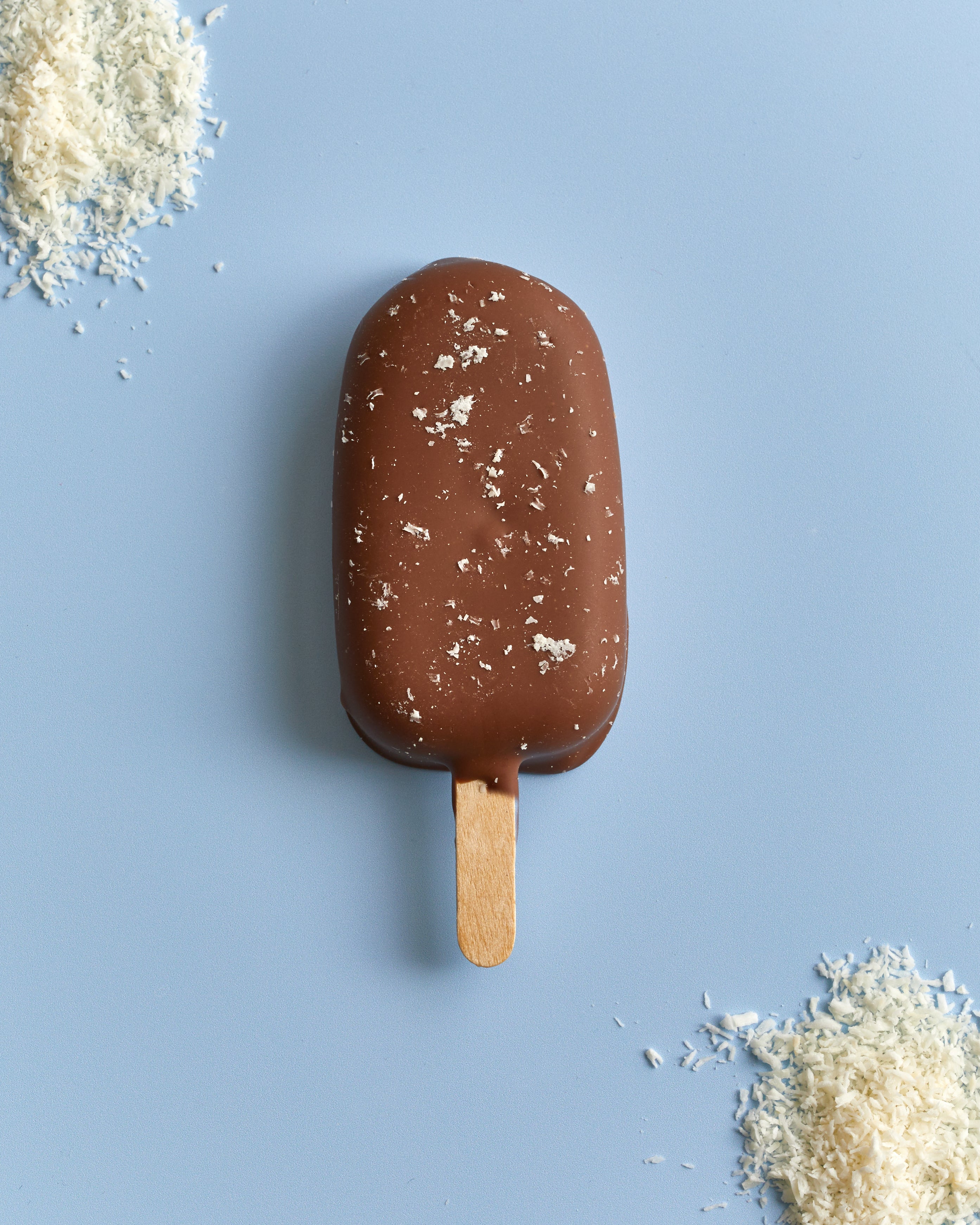 • Guimauve artisanale noix de coco enrobée de chocolat au lait du Pérou et éclats de noisettes torréfiées